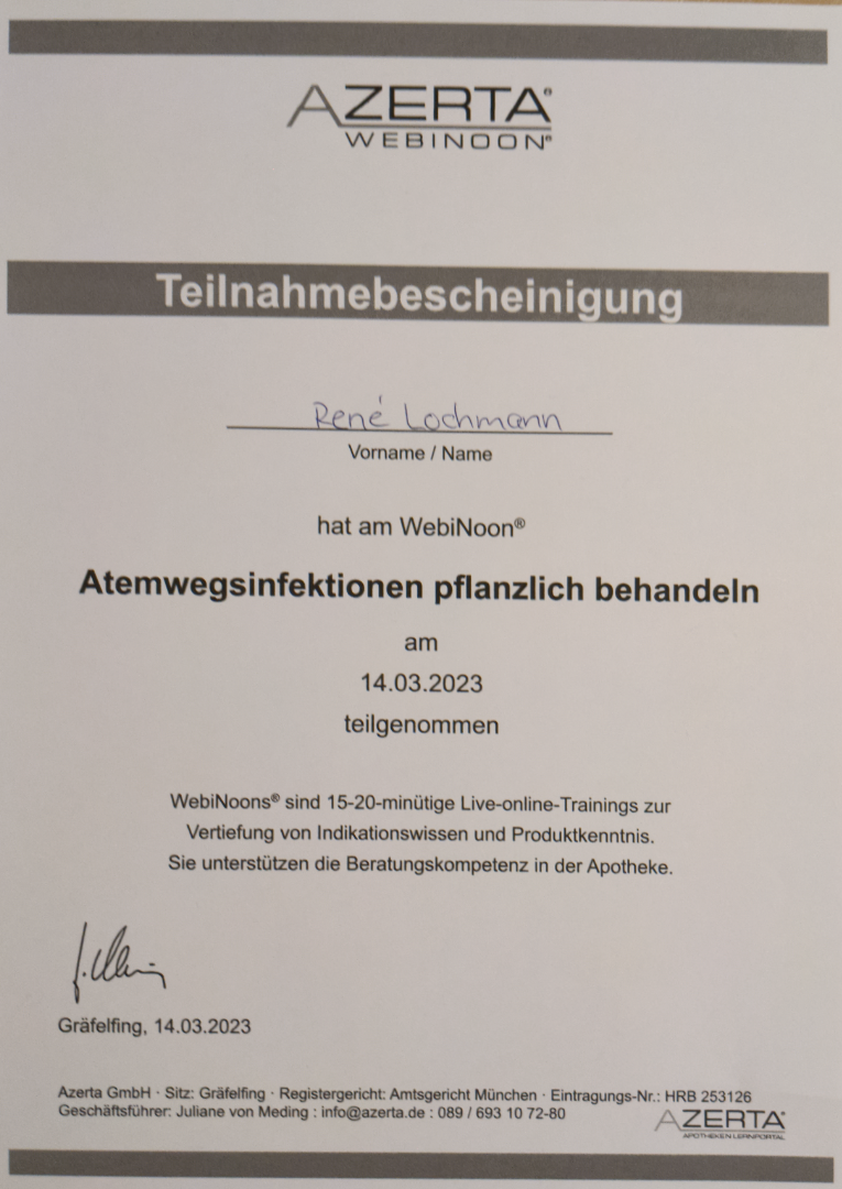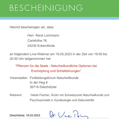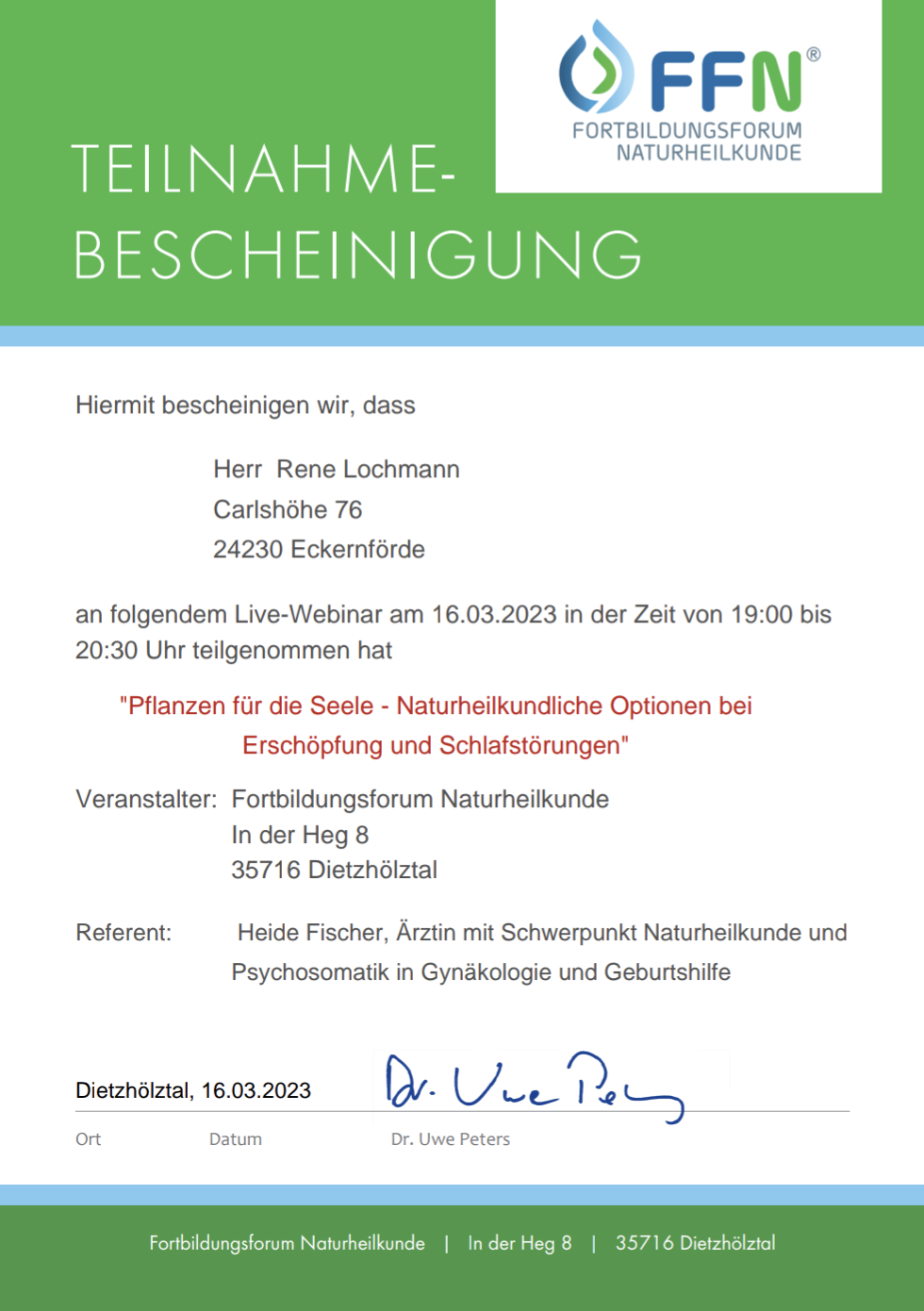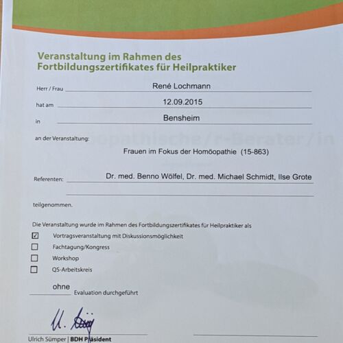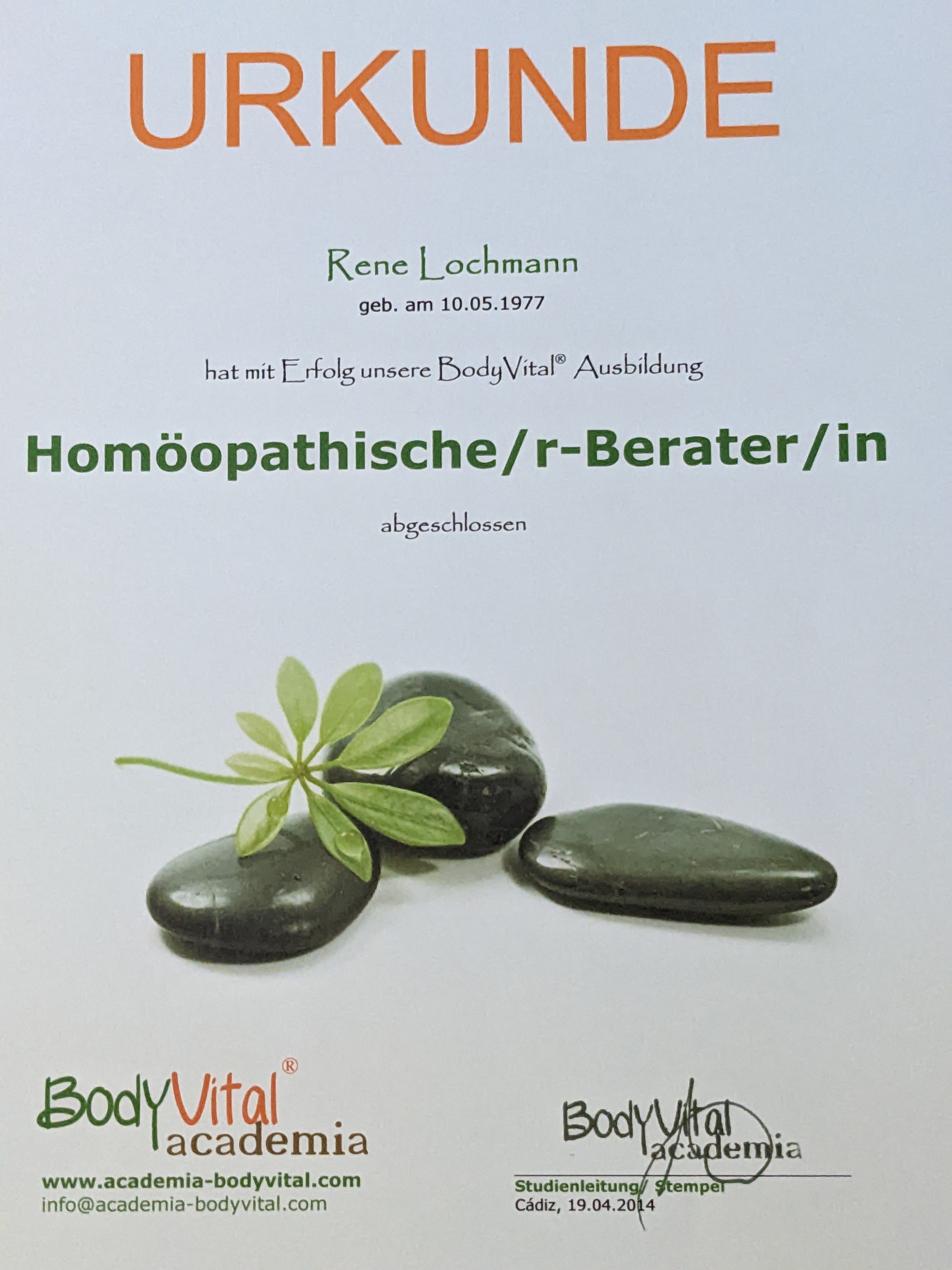 - Abschluss zum Homöopatischen Berater, Akademie für freie Gesundheitsberufe