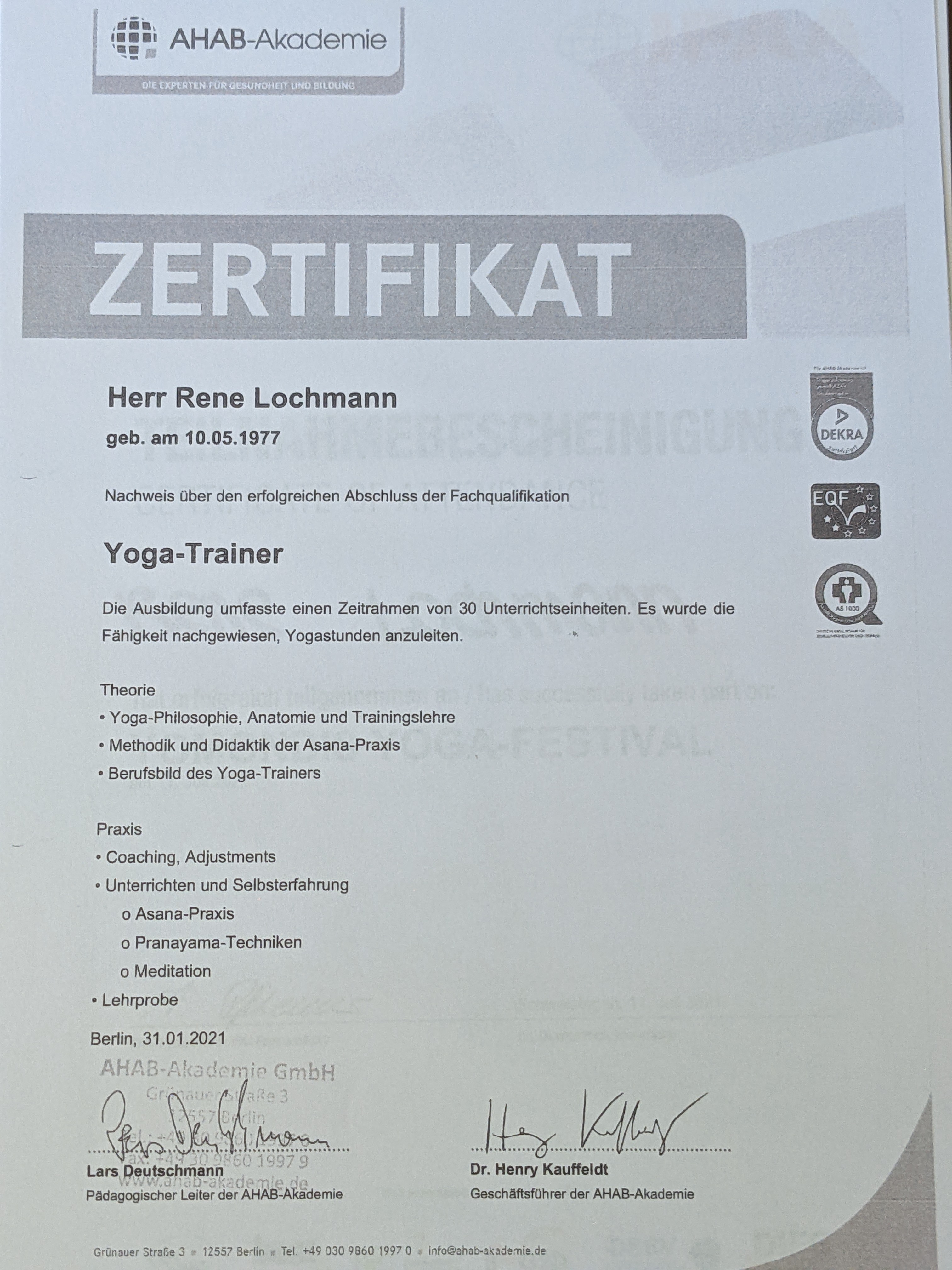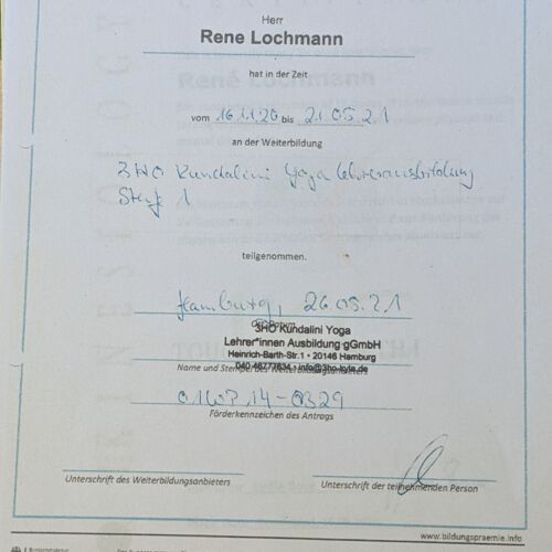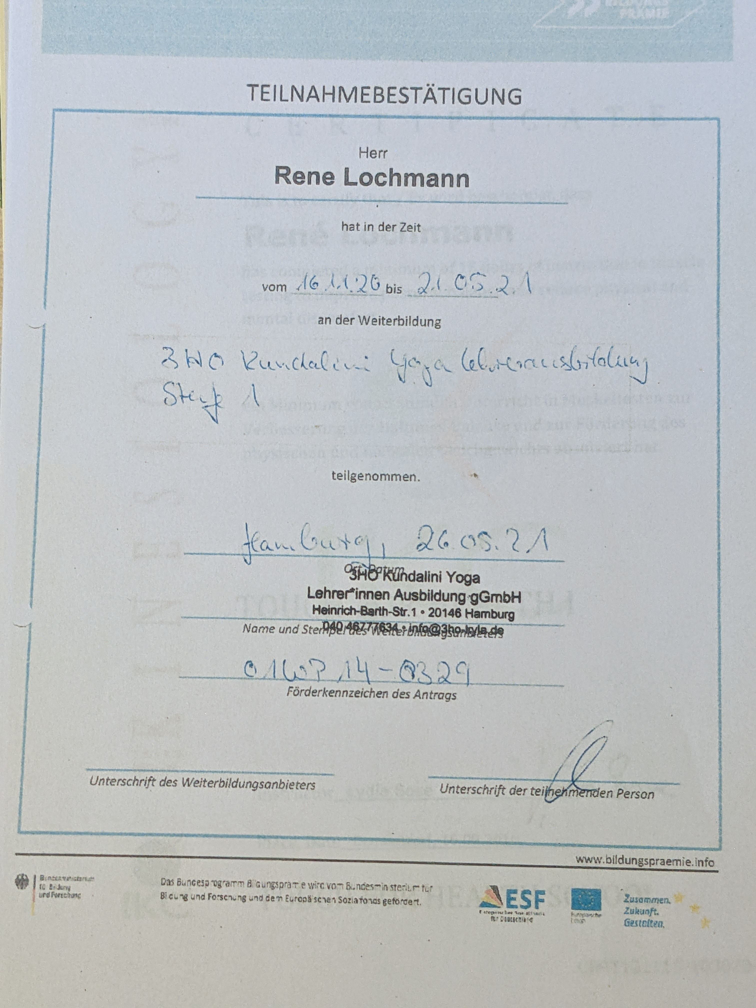 - Ausbildung zum Kundalini Yogalehrer (3HO Hamburg)