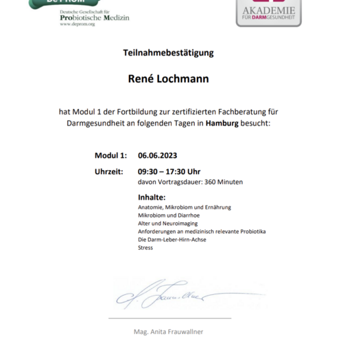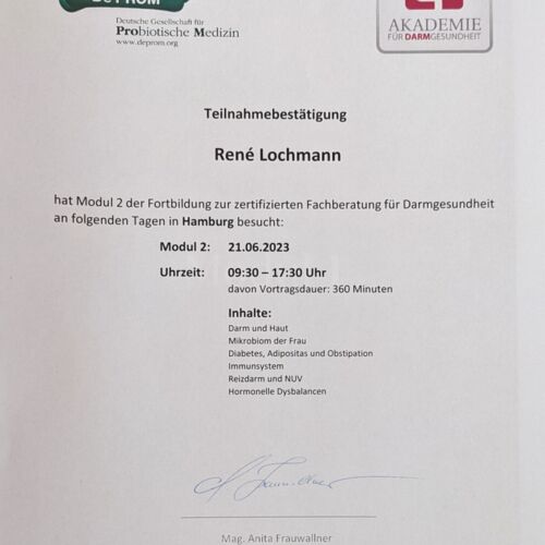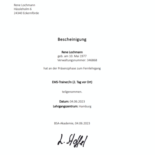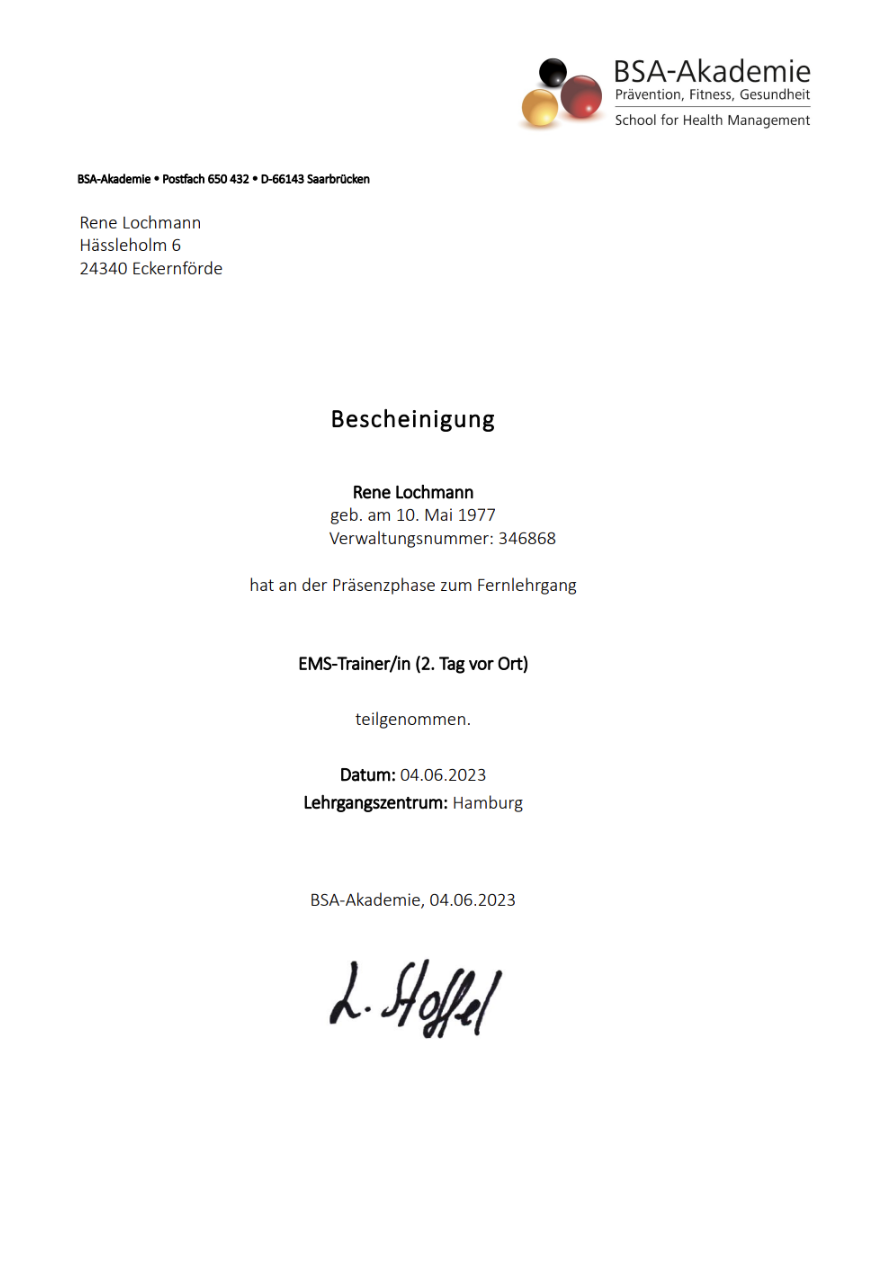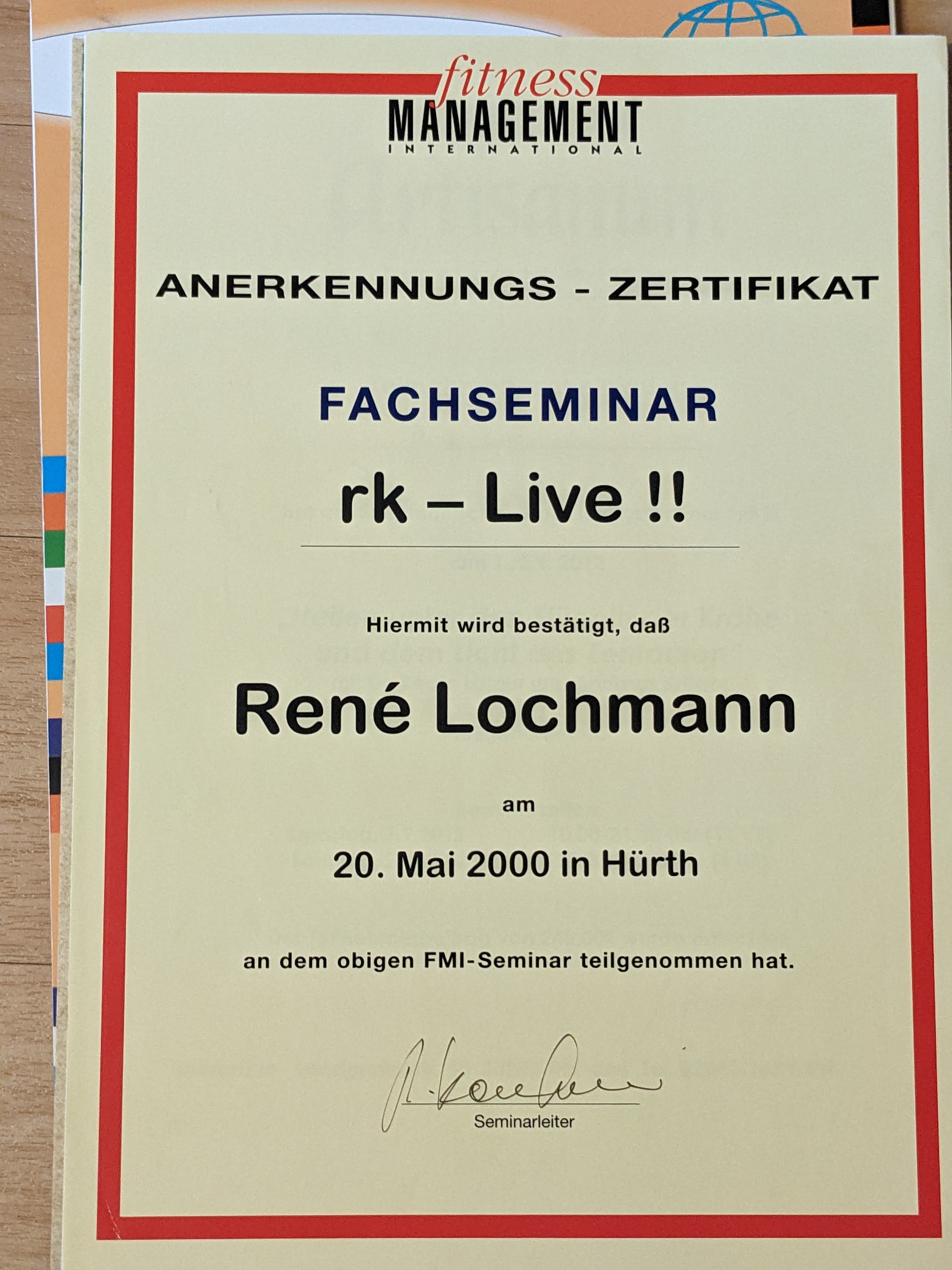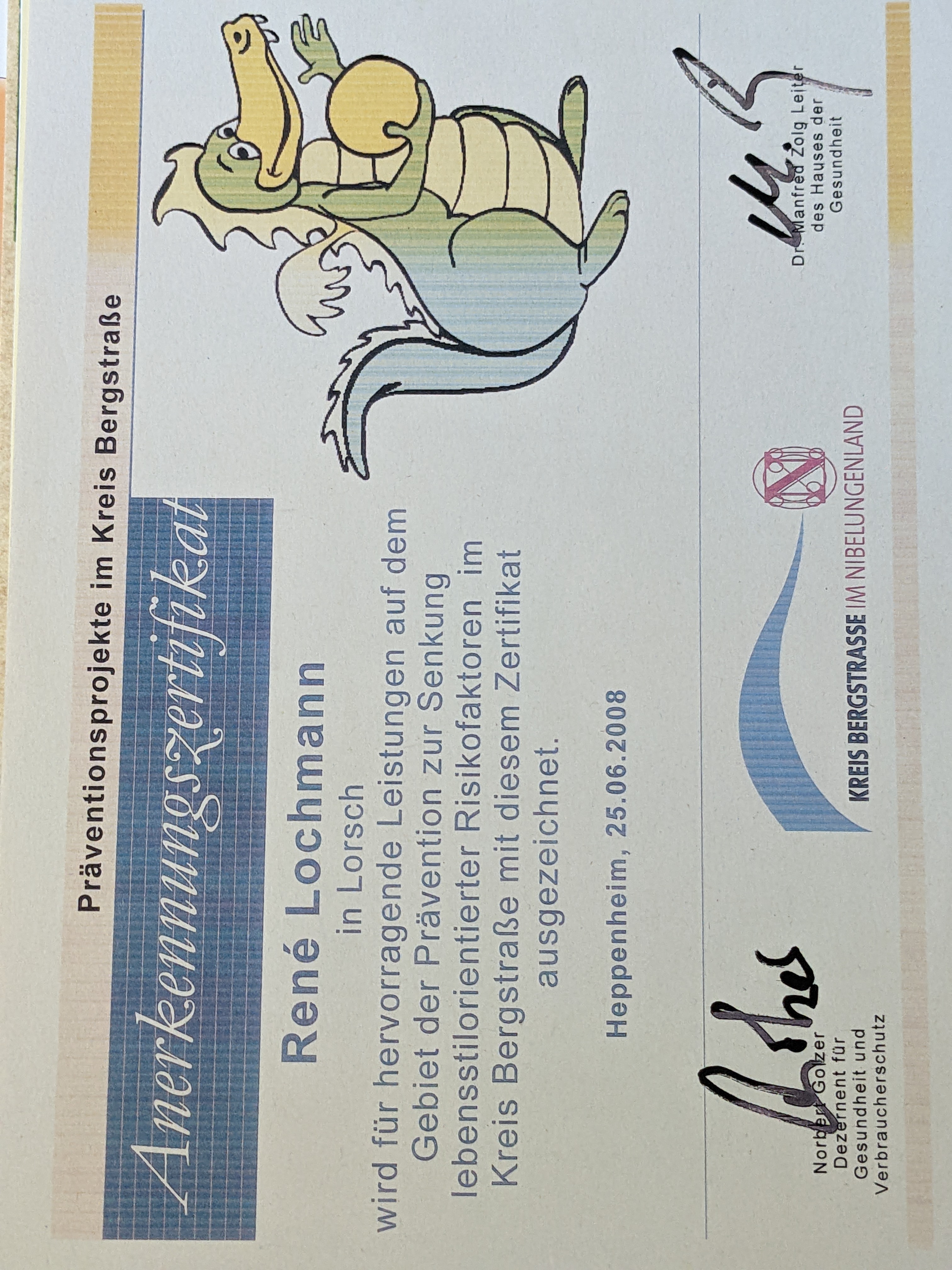 - Abschluss Rehasport- Trainer beim Deutschen Verband für Fitness-& Gesundheitssport e.V.