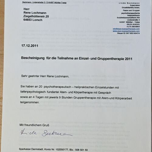 - Gründung „HP Praxis Lochmann“ in Lorsch