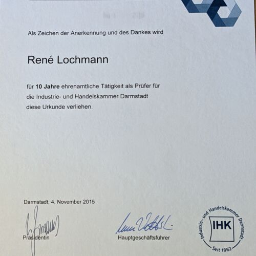 - Wahl zum 1. Vorsitzenden im Prüfungswesen der IHK